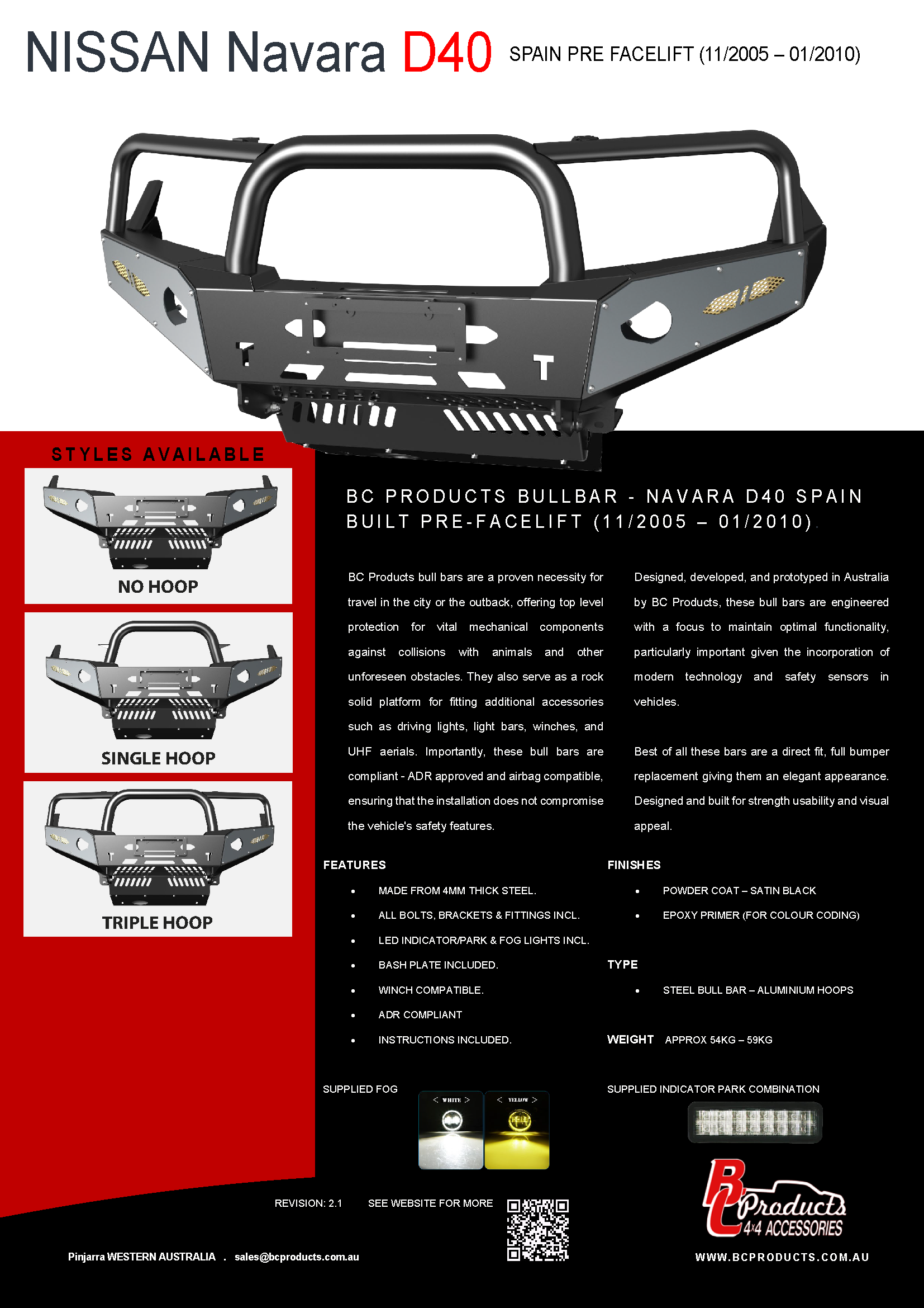 - NISSAN Navara D40 SPAIN (VSK) : 11/2005 – 01/2010 All Variants