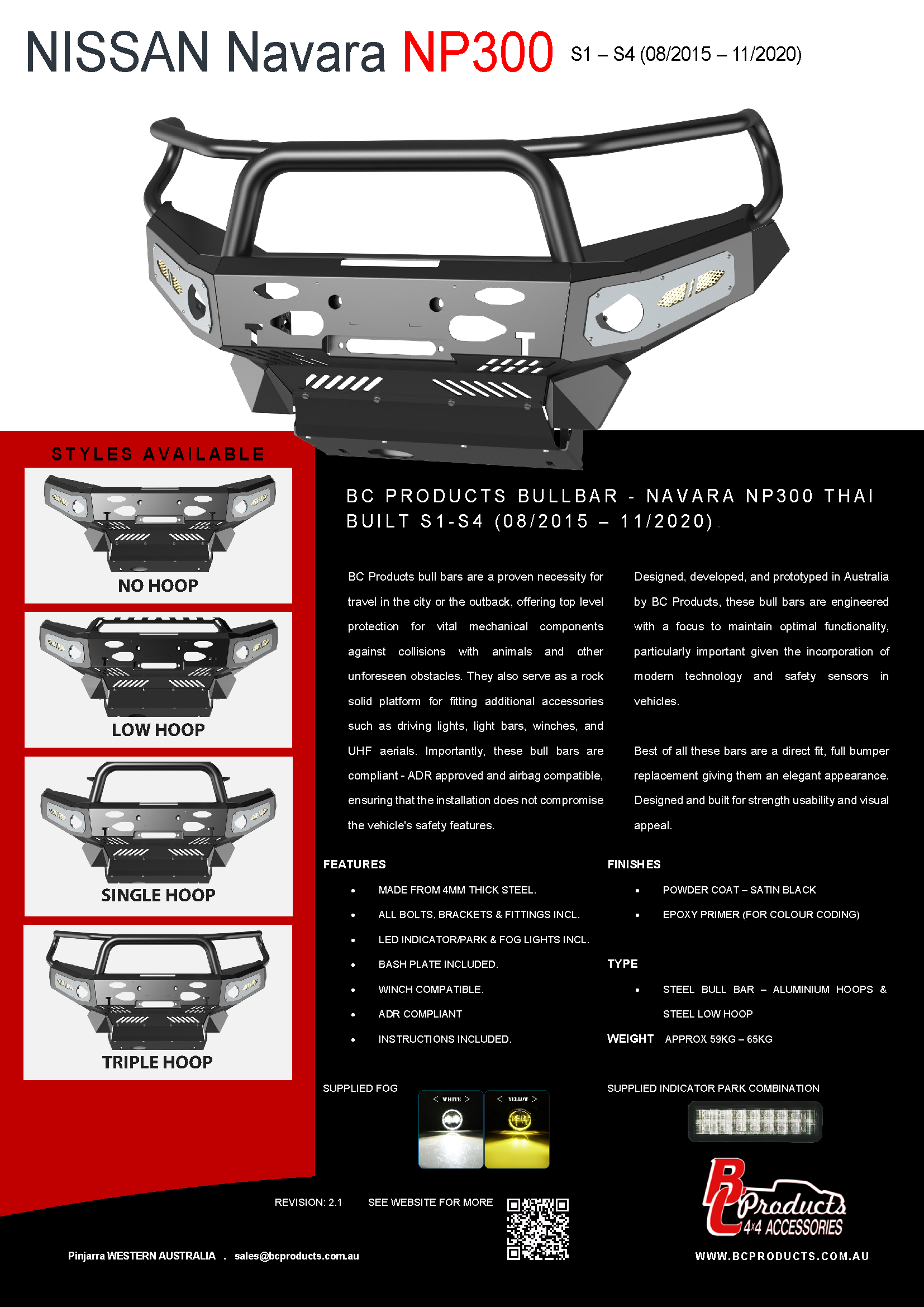 BC Products bull bars are a proven necessity for travel in the city or the outback, offering top level protection for vital mechanical components against collisions with animals and other unforeseen obstacles. They also serve as a rock solid platform for fitting additional accessories such as driving lights, light bars, winches, and UHF aerials. Importantly, these bull bars are compliant – ADR approved and airbag compatible, ensuring that the installation does not compromise the vehicle’s safety features.